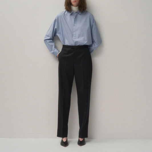 ATON|MERINO COLLEGE FLANNEL TUCKED WIDE PANTS