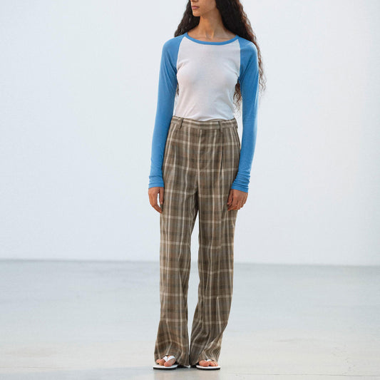 AURALEE/SUPER FINE TROPICAL WOOL CHECK TWO-TUCK SLACKS