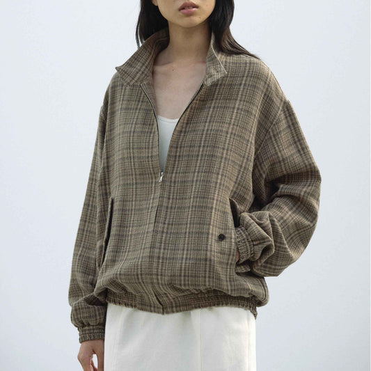 AURALEE/SILK LINEN NEP CHECK ZIP BLOUSON