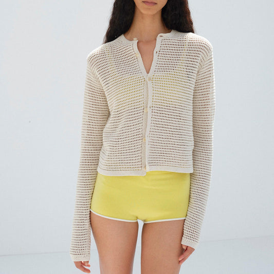 AURALEE/TUSSAH SLIK COTTON MESH KNIT CARDIGAN