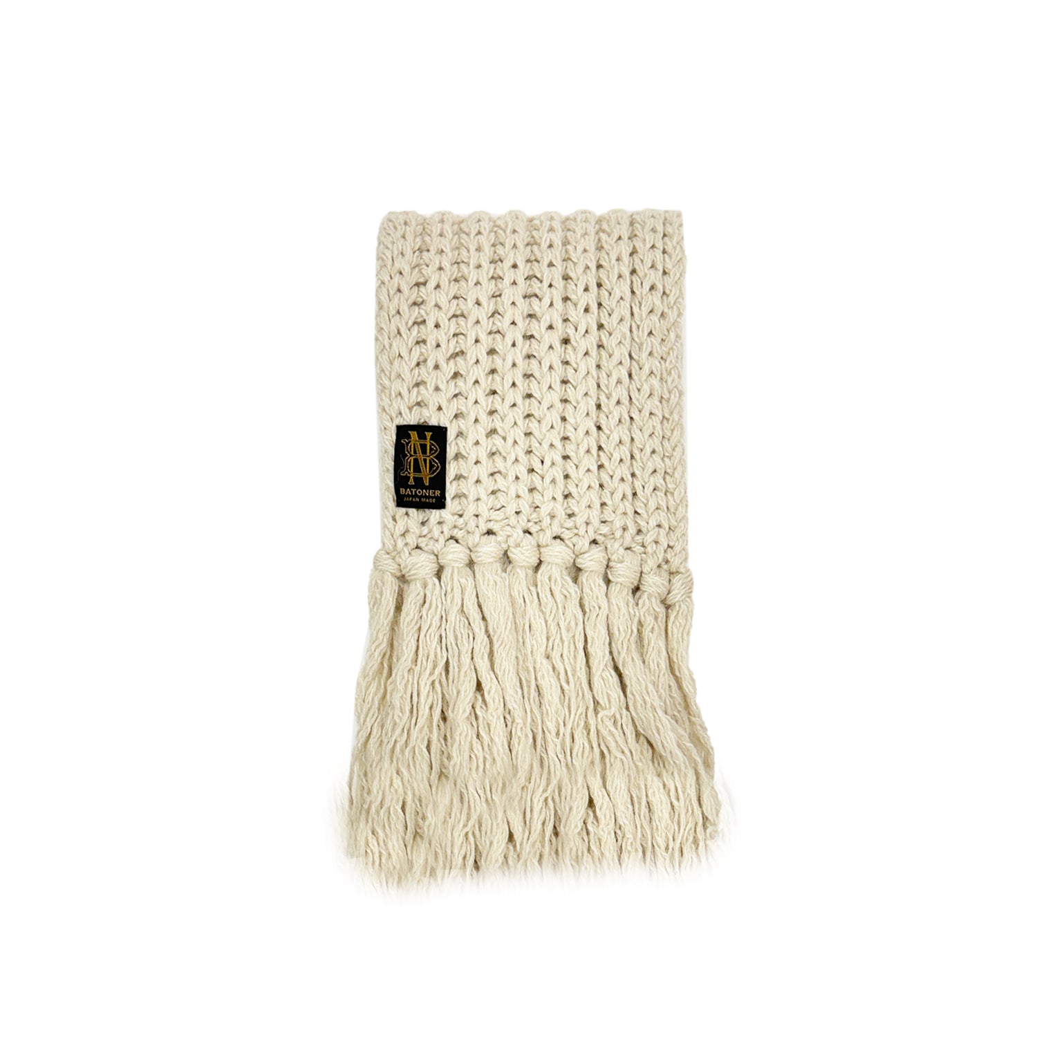 膨らみの強い太番手のメリノウールに、柔らかく肌触りの良いベビーアルパカと光沢のあるシルクをブレンドした糸の定番フリンジマフラーです。