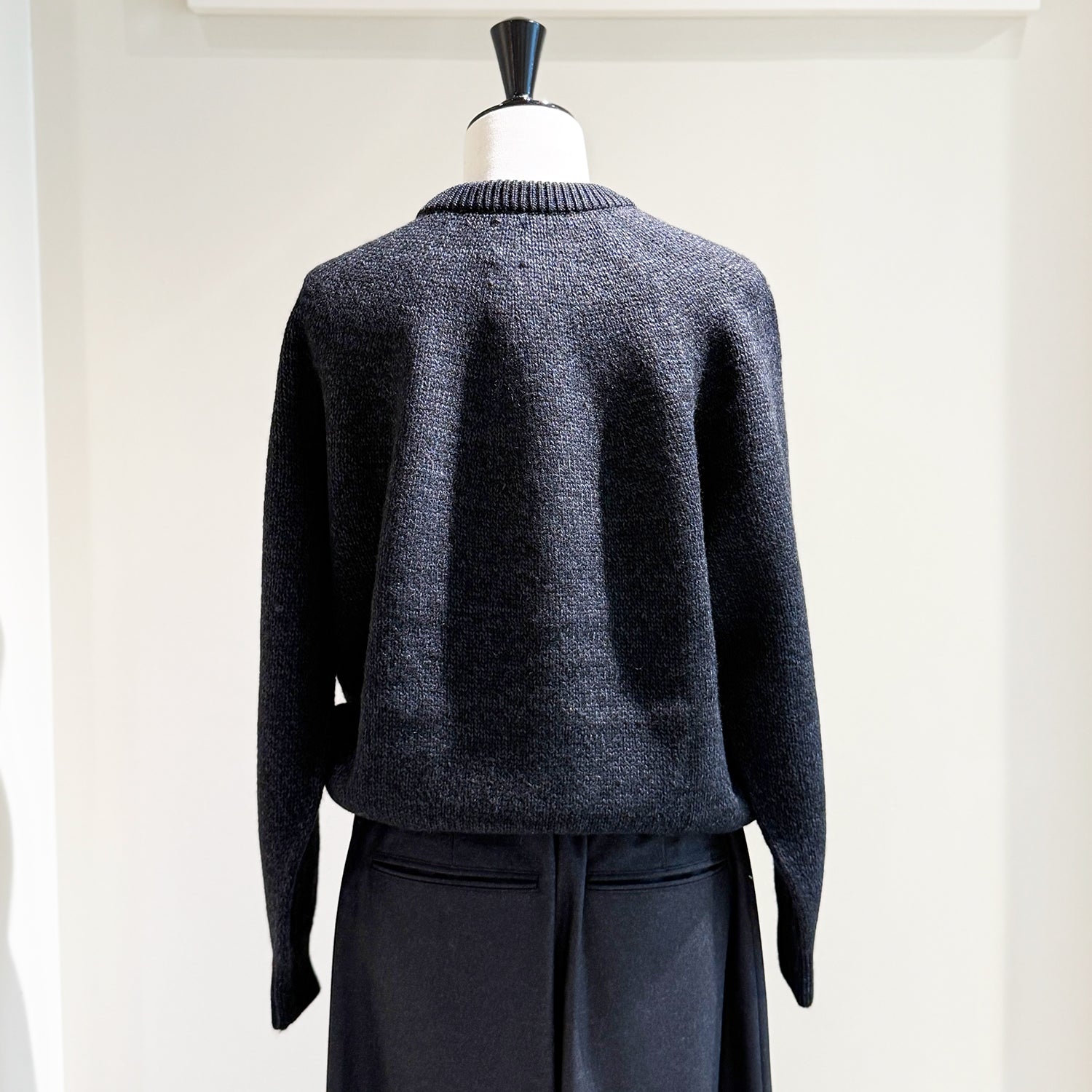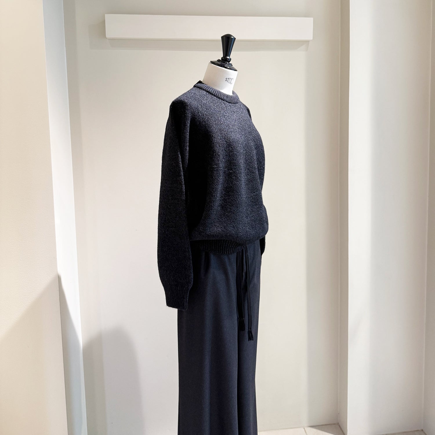 シルクを撚糸し深みのあるメランジカラーに仕上げたシンプルな存在感あるニット。