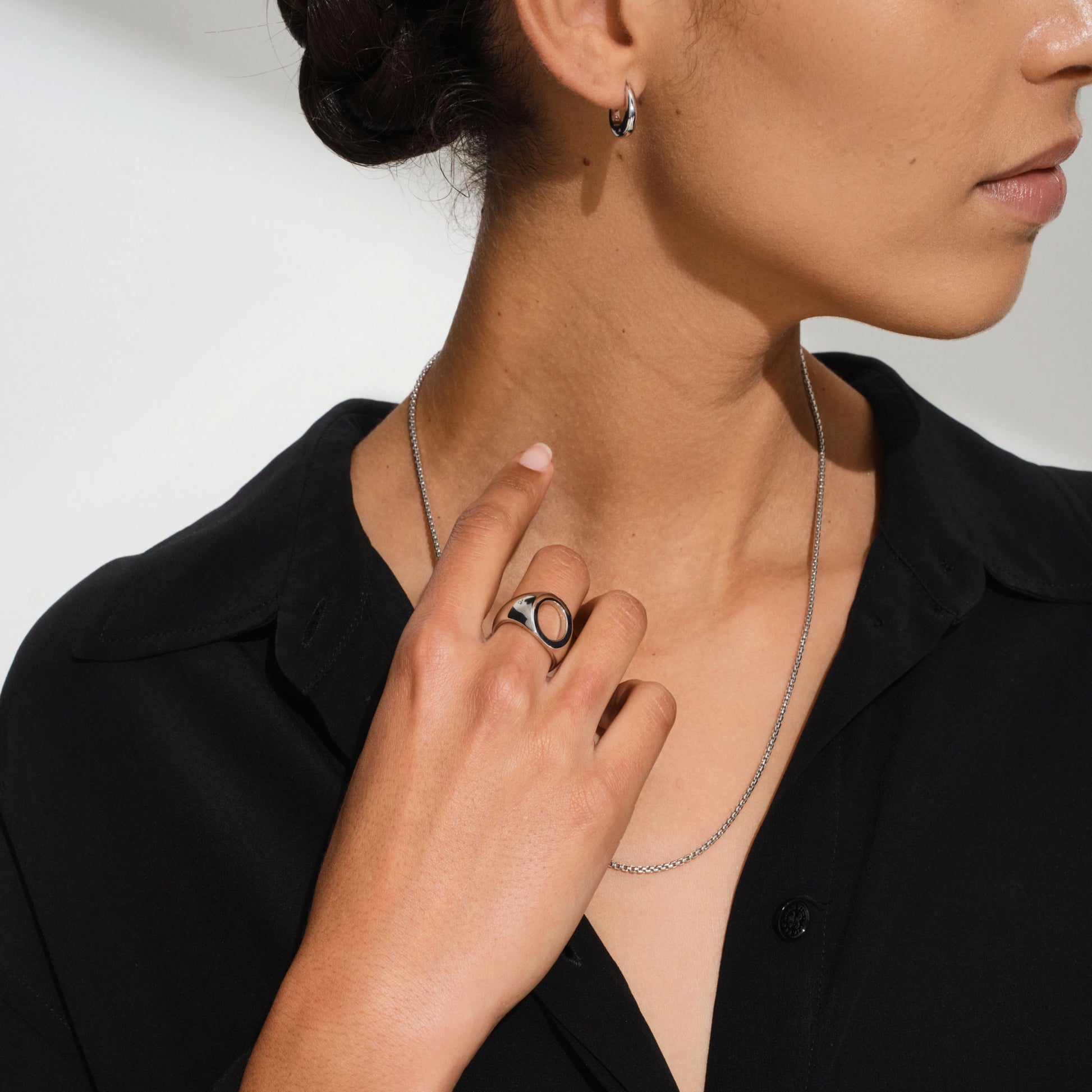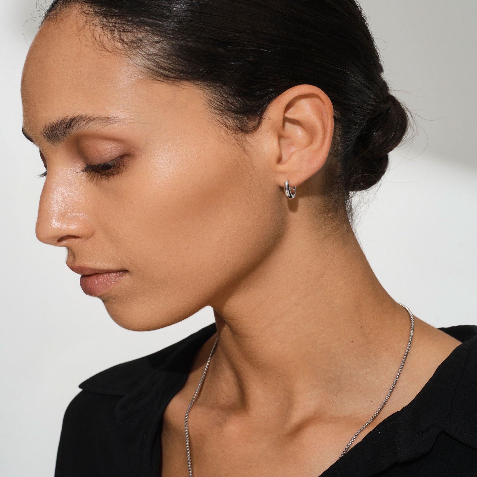 柔らかな丸みを帯びたスクエアリンクに繊細なチェーンを組み合わせたコンパクトなデザイン。カニの鋳造ロックとトム・ウッドのシグネチャーバーで開閉。貴金属は100%リサイクル